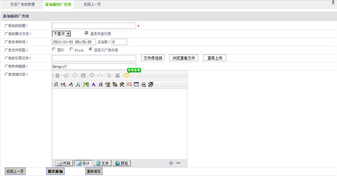 4.在“广告文件类型”字段,可以选择图片、Flash和无封面形式。